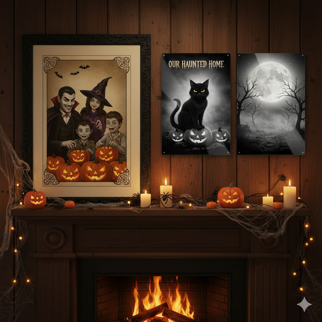Framed and metal photo prints make classy Halloween keepsakes that add sophistication to seasonal décor. Use black frames or metallic finishes for a spooky edge, and display them in living rooms or dining areas as stylish reminders of your Halloween memories.